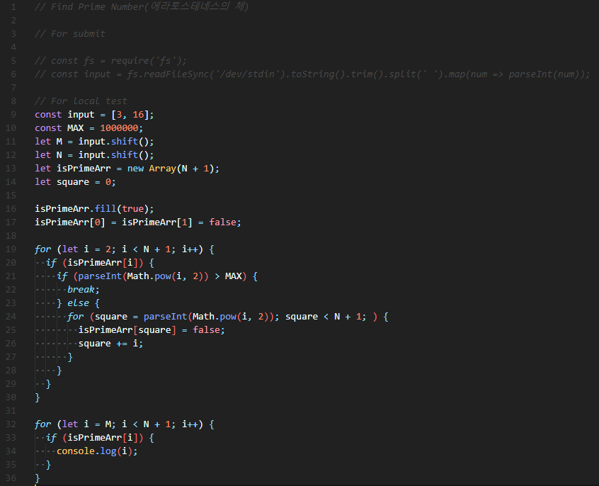 먼저, (1 ≤ M ≤ N ≤ 1,000,000)이므로 MAX를 선언해준다.