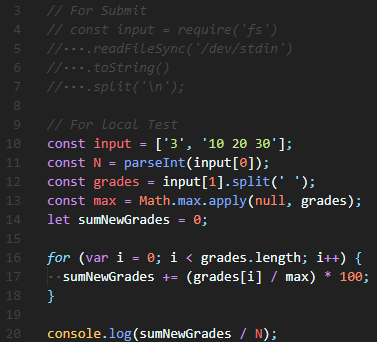 3. 백준에서는 적용되지 않지만, Math.max(...values)처럼 ES2015 'Spread'사용하여 구하는 방법