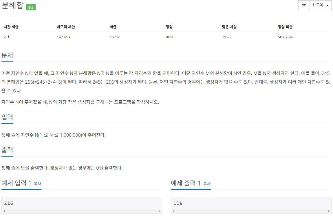 😊 브루트 포스로 1부터 생성자가 있는 숫자들을 구해주고( d(n) ), N의 생성자가 여러 개라면 배열에 넣어준다.
