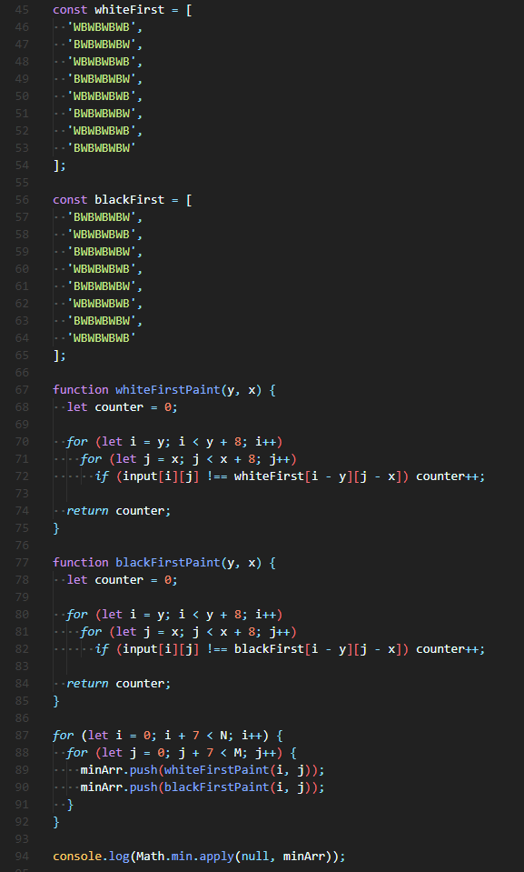| if (input[i][j] !== whiteFirst[i - y][j - x]) counter++; |