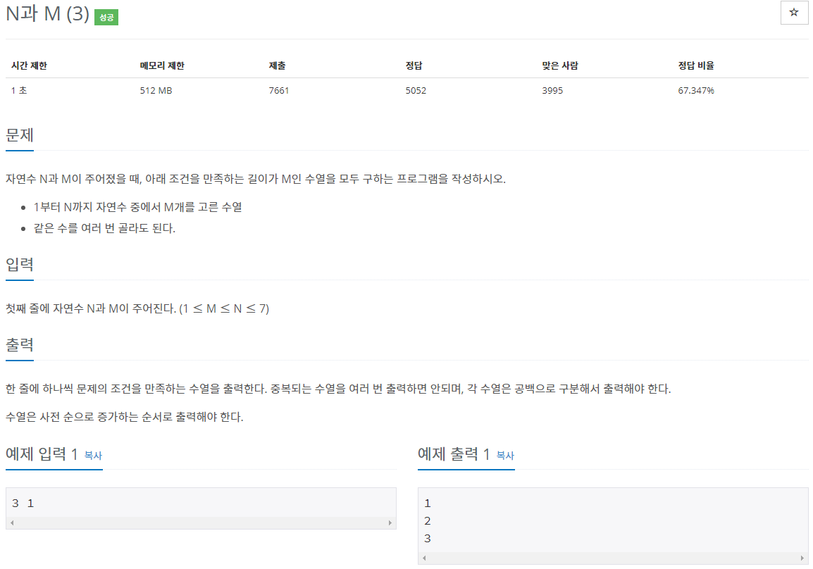 N과 M (1), (2)를 이해했다면 쉽게 풀 수 있는 문제