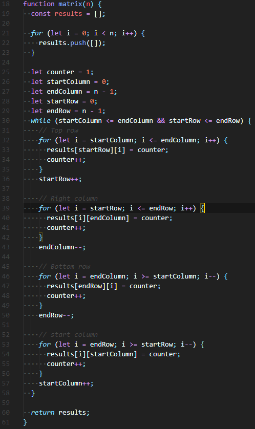 | // while (startColumn <= endColumn && startRow <= endRow) { |