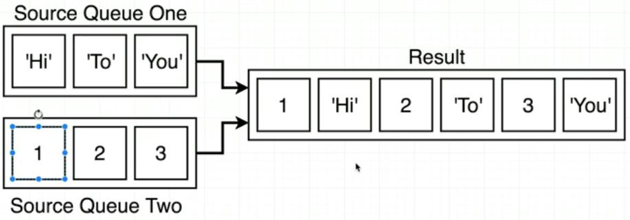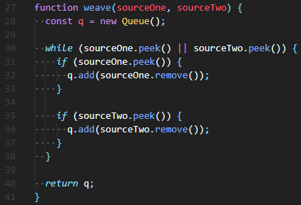 Q. 값을 다르게 가지고 있는 2개의 큐(Queue)를 1개의 큐(Queue)로 만드는 weave 함수(function)을 만들어라.