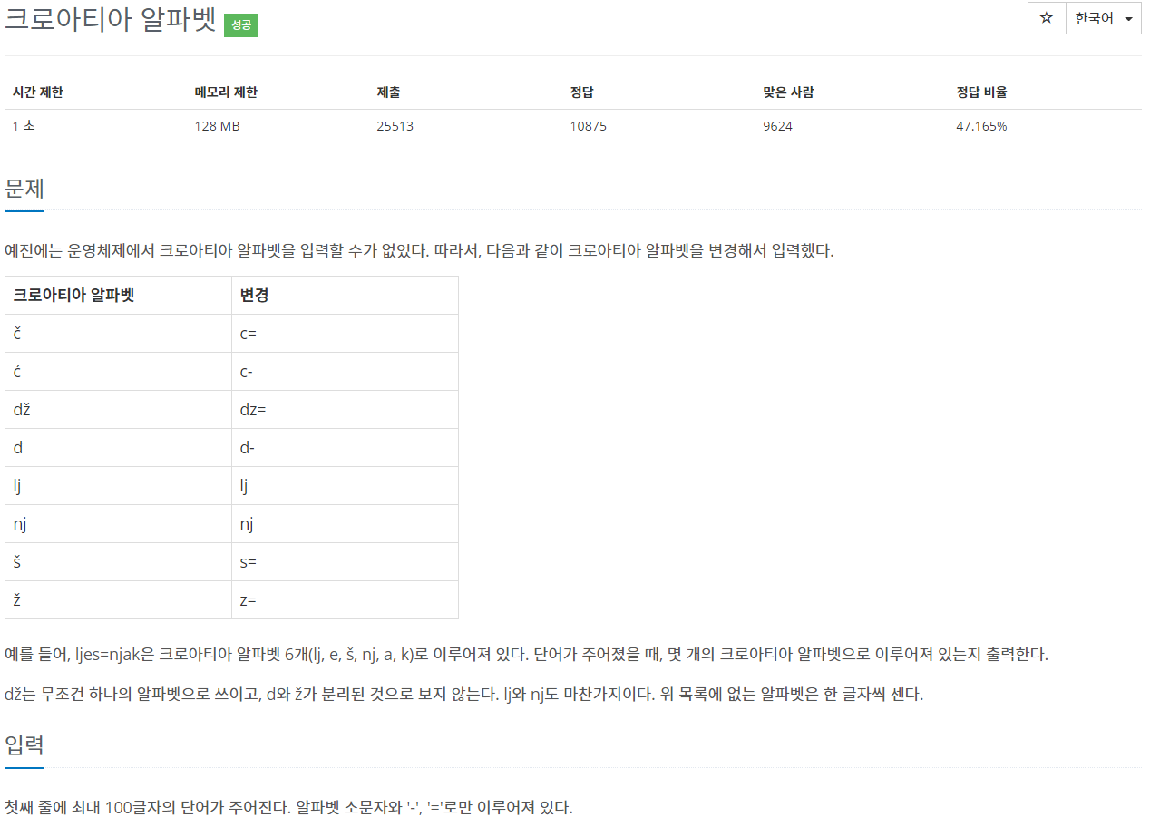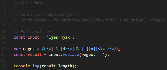 따라서 결과의 length를 출력해주면 크로아티아 알파벳의 개수를 알 수 있다.