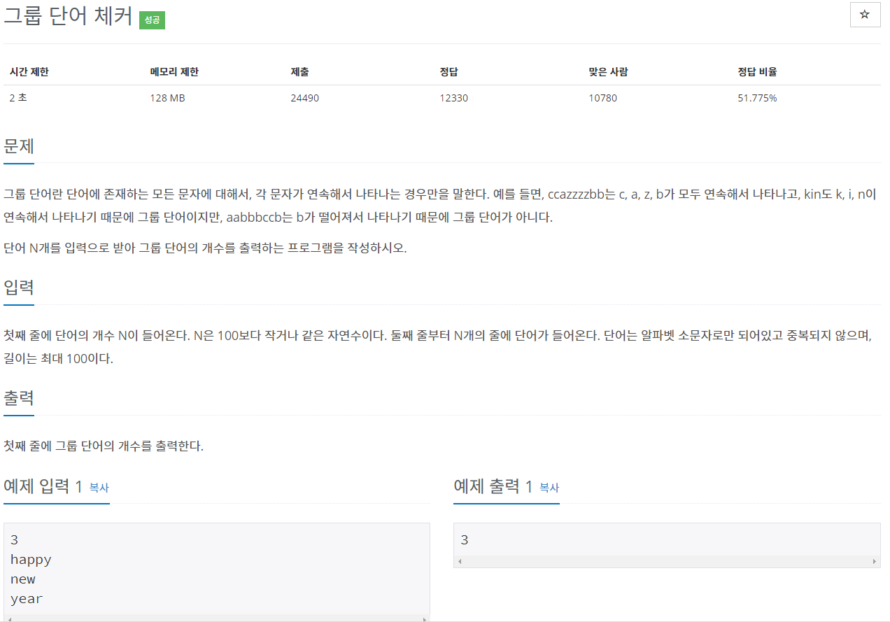 같다면 그룹단어, 그렇지 않다면 더 이상 검사할 필요가 없기 때문에 counter를 감소시켜주고, break으로 내부 for loop을 끝냈다.