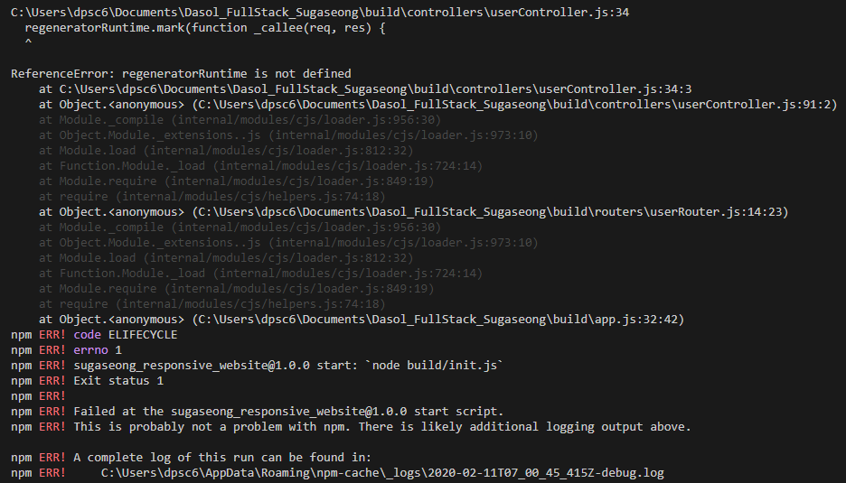 .babelrc 파일에 ["@babel/transform-runtime"] 추가해야 한다.