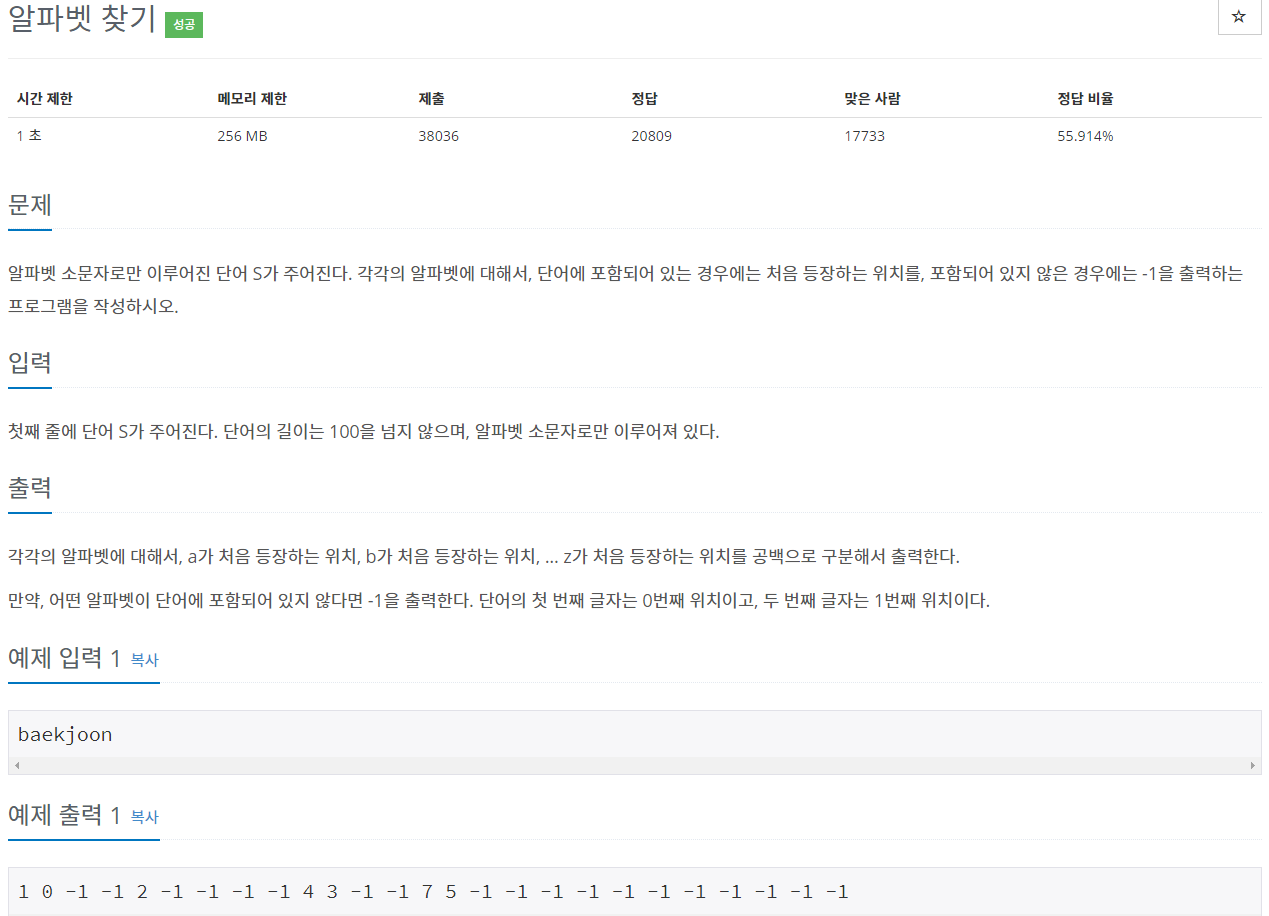 입력받은 값중에 해당 알파벳이 있는지, 있다면 그 위치(index)를 반환받고, 없다면 -1을 반환받기 위해 사용하였다.