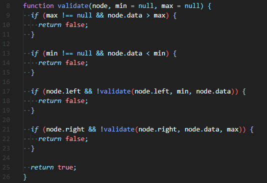 Q. 주어진 Node가 이진 탐색 트리(Binary Search Tree)로서 유효한지 확인하는 function을 작성하라.