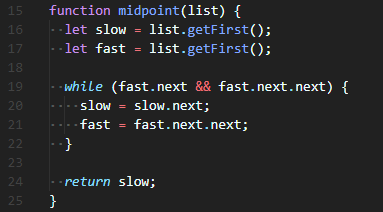 | while (fast.next && fast.next.next) { |